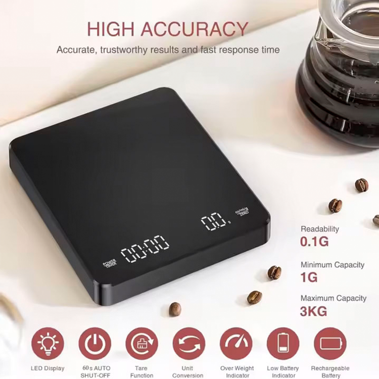 یکی از برجستهترین نقاط قوت کافه ترازو، دقت بالای آن است. با دقت 0.1 گرم، این ترازو امکان اندازهگیری دقیق دانههای قهوه، آب یا هر ماده دیگری را فراهم میکند. این ویژگی برای کسانی که به تهیه قهوههای تخصصی علاقهمند هستند، بسیار مهم است.