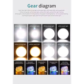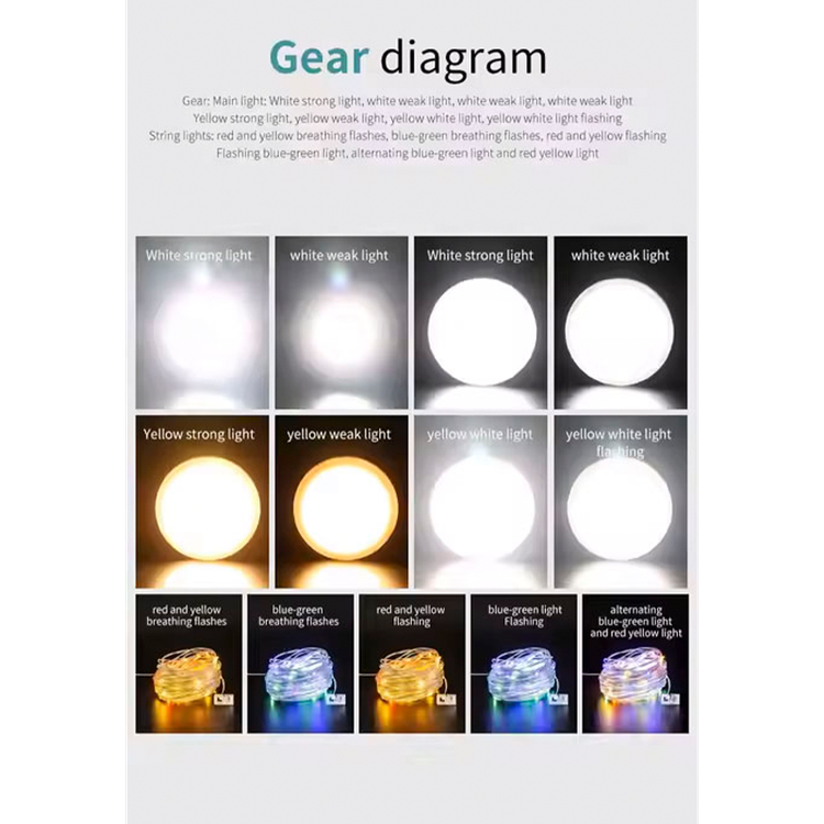 چراغ اصلی LED با حالتهای متنوع: نور مهتابی (کم، متوسط، زیاد)، نور زرد (کم، متوسط، زیاد)، نور ترکیبی (مهتابی + زرد) و حالت چشمکزن ترکیبی.