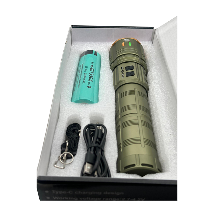 ✅ پاوربانک داخلی + پورت تایپ C – امکان شارژ سریع چراغ قوه و همچنین شارژ دستگاههای دیگر در مواقع ضروری.