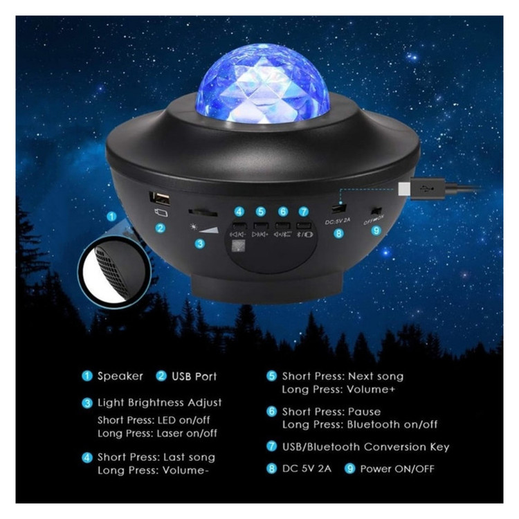 چراغ خواب کهکشانی اسکای لایت با توجه به قابلیت های که دارد، این چراغ خواب را با دیگر چراغ خواب ها متمایز مینماید، این چراغ خواب دارای اسپیکر می باشد و قابلیت پخش موزیک را از طریق بلوتوث و فلش مموری دارد ، و همچنین با دارا بودن لیزر های بیشماری که بر روی دستگاه می باشد ، حس ستارگان بر روی فضا را القا می کند ،و همچنین دارای تنوع رنگی نوری بالا می باشد که متناسب با سلیقه قابل تغییر می باشد و با پوشش 270 درجه ای ، کل فضای اتاق را در بر میگیرد که حس فوقالعاده ای ایجاد میکند، و قابلیت دیگر این چراغ خواب ، تنظیم سطح نور می باشد که این قابلیت خیلی کاربردی می باشد زیرا با این قابلیت شخص می تواند نور محیط را متناسب با سلیقه خود تغییر دهد.