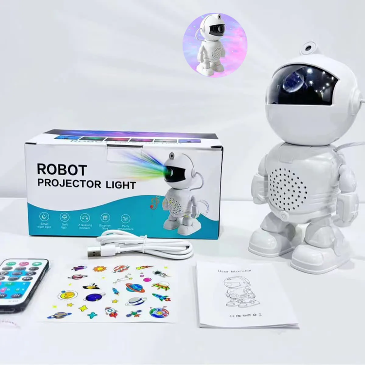 پروژکتور نوری مدل ربات فضانوردی یک وسیله تزئینی، خلاقانه و جذاب است که با طراحی منحصربهفرد خود، فضایی رؤیایی و آرامشبخش ایجاد میکند. این محصول با تابش نورهای رنگی و الگوهای متحرک از ستارگان، برای اتاق خواب، جشن تولد، اتاق کودک یا فضاهای دکوری گزینهای ایدهآل محسوب میشود.